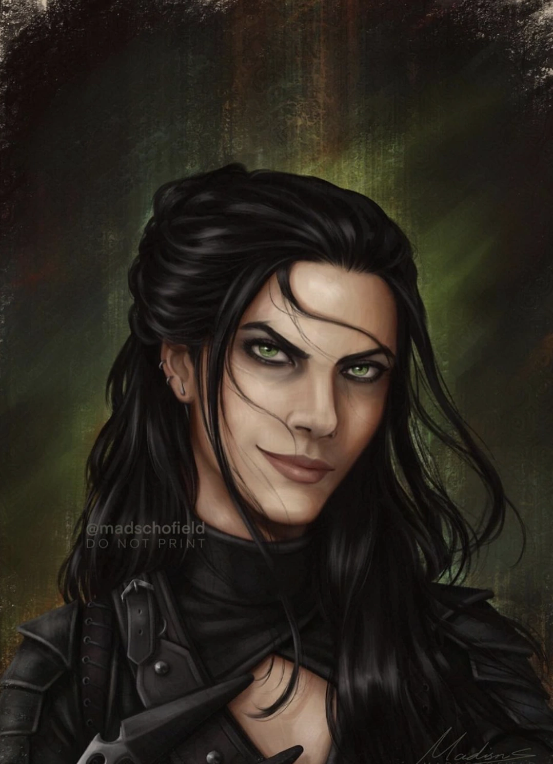 Fallon had midnight-black hair and green eyes. She was immortal but appeared as if she was in her twenties. She was described to have sharper features, a nod to her demonic qualities.